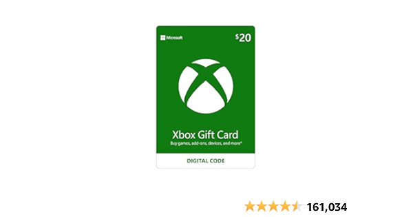 Gift Cards Xbox - SmartCDKeys XBOX Live $5 (USD Gift Card) (USA) Consoles. XBOX LIVE $ 4.22 $ 5.00. VIEW ALL PRICES . XBOX Live $20 (USD Gift Card) (USA) ... Purchase an Xbox Gift Card with email delivery on SmartCDKeys and you will instantly receive a 25-digit Xbox Gift Card code that does not have a time limit. ... cheaper, and with digital instant delivery. Thus, you do ... Amazon.com. Spend less. Smile more. Browse a massive library of new and popular movies and TV shows. Great as a gift to a friend or yourself. Xbox Game Pass Ultimate: 1 Month Membership [Digital Code] Xbox. 4.7 out of 5 stars. 28,581. Xbox One, Xbox Series S, Xbox Series X. 1 offer from $14.99. Splatoon 3 Standard - Nintendo Switch [Digital Code]