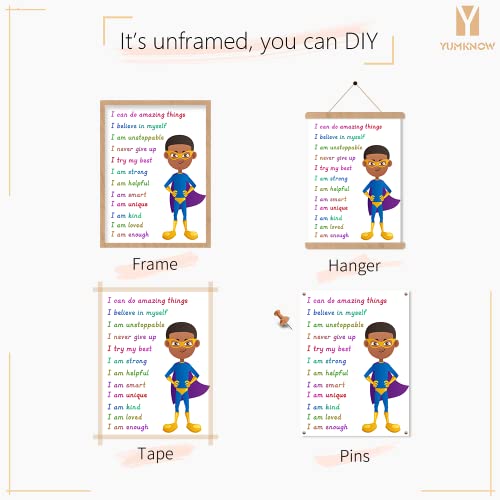 Superhero Motivational Wall Art - Colorful Inspirational Wall Decor - Positive Quotes for African American Boys Room - Self affirmation Gift for ...