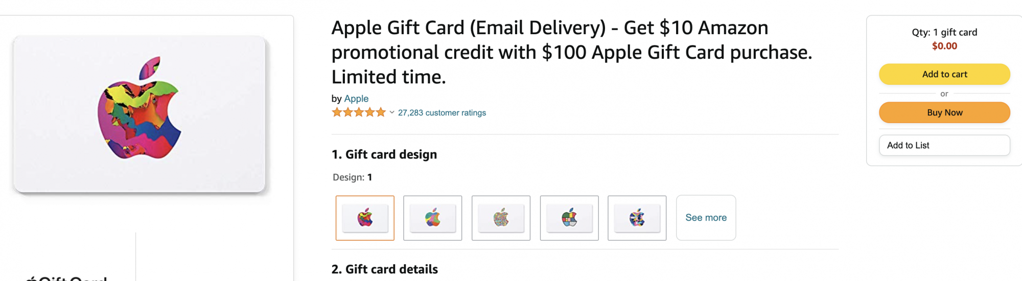 Amazon.com: apple gift card $2500 - $50000 Apple Gift Card - App Store, iTunes, iPhone, iPad, AirPods, MacBook, accessories and more 7,062 $5000 - $20000 Best Seller Amazon.com eGift Card 857,082 $100 - $2,00000 $200 Visa Gift Card (plus $6.95 Purchase Fee) 13,896 $20695 Best Seller Amazon.com Gift Card in a Reveal (Various Designs) 73,448 $2000 - $2,00000
