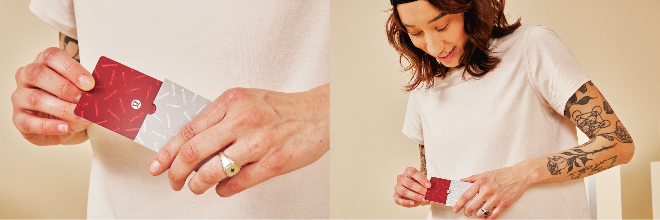 Gift Cards | lululemon athletica Gift Cards issued through lululemon Like New (trade-in e-gift cards) may not be redeemed in combination with employee or community discounts (Military / First Responder / Health Care Worker, Sweat Collective, Ambassador). Gift Cards purchased in China, Mexico, Dubai, or Qatar must be redeemed in the same country of purchase.