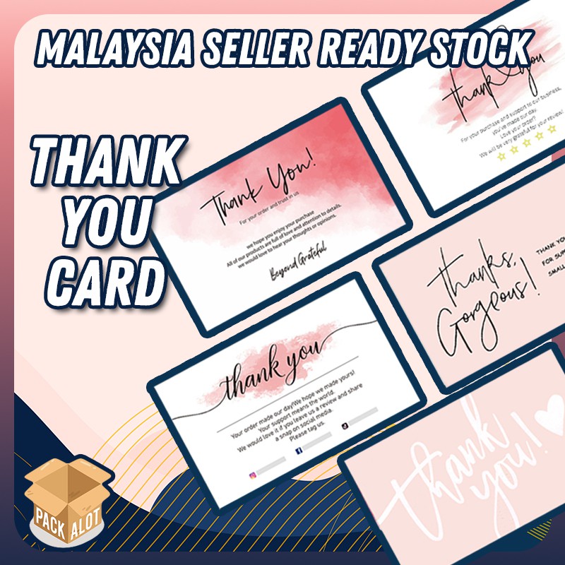 1 Card Ready Made Soft Pink & Red One-sided Thank You Gift Message Card Appreciation for Small Business Kad Terima Kasih