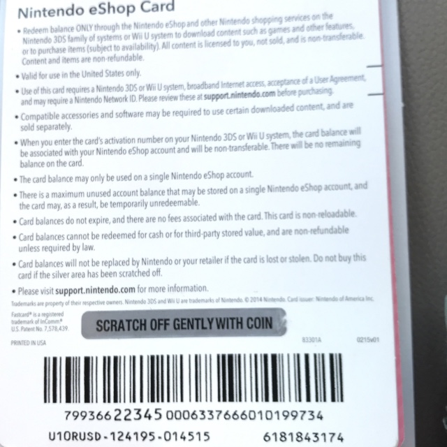 Nintendo eshop gift card code scratched off